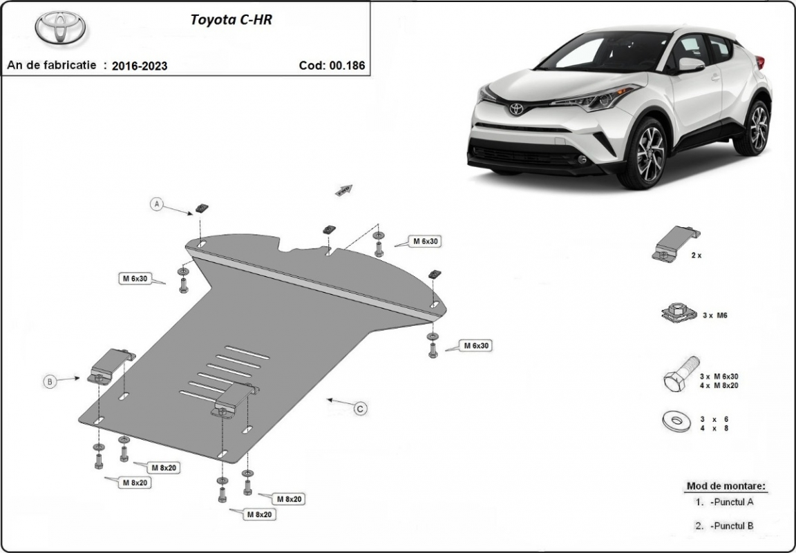 | Chaque voiture a des trous de vis fabriqués en usine pour le montage de la plaque de protection, ce qui rend le montage très facile. Vous pouvez le faire vous-même ou à n'importe quel point de service automatique. |